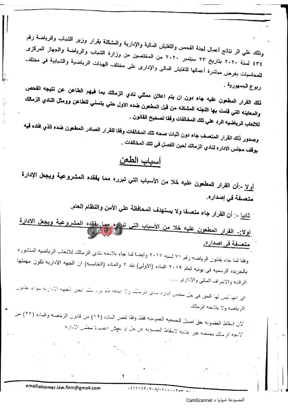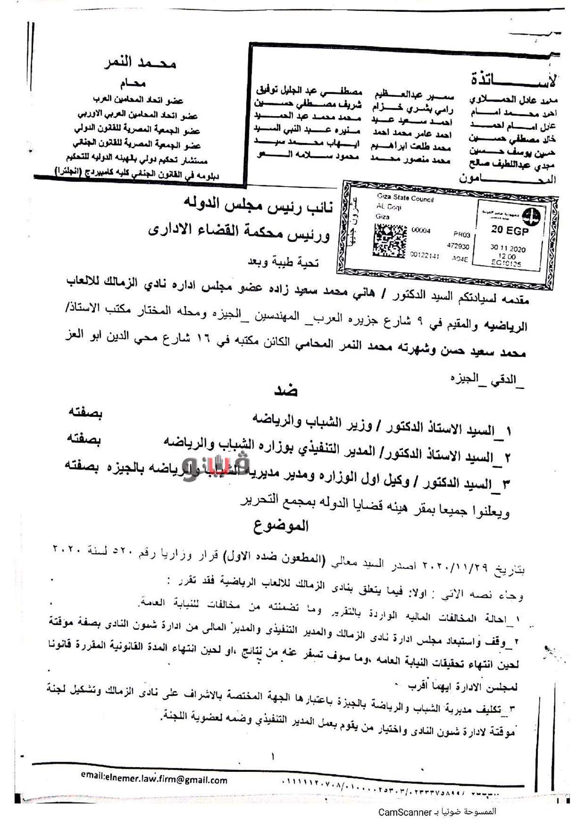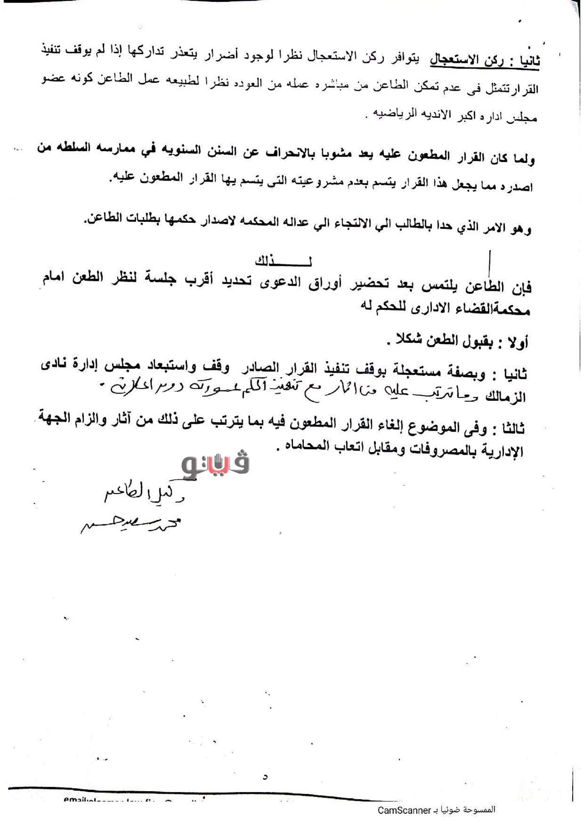 ننشر عريضة الدعوى القضائية المقامة من هاني زادة لإلغاء قرار حل مجلس الزمالك | مستند