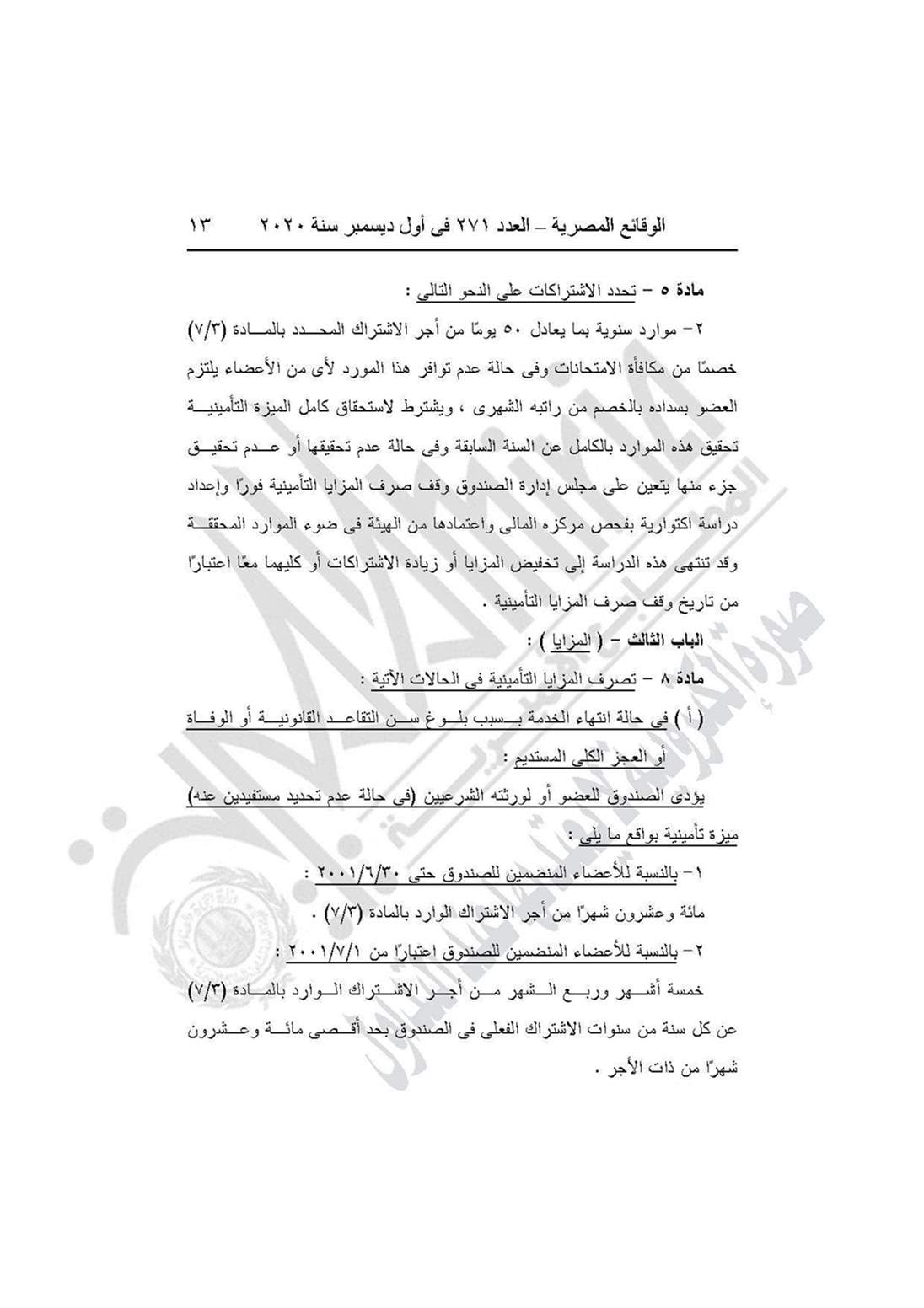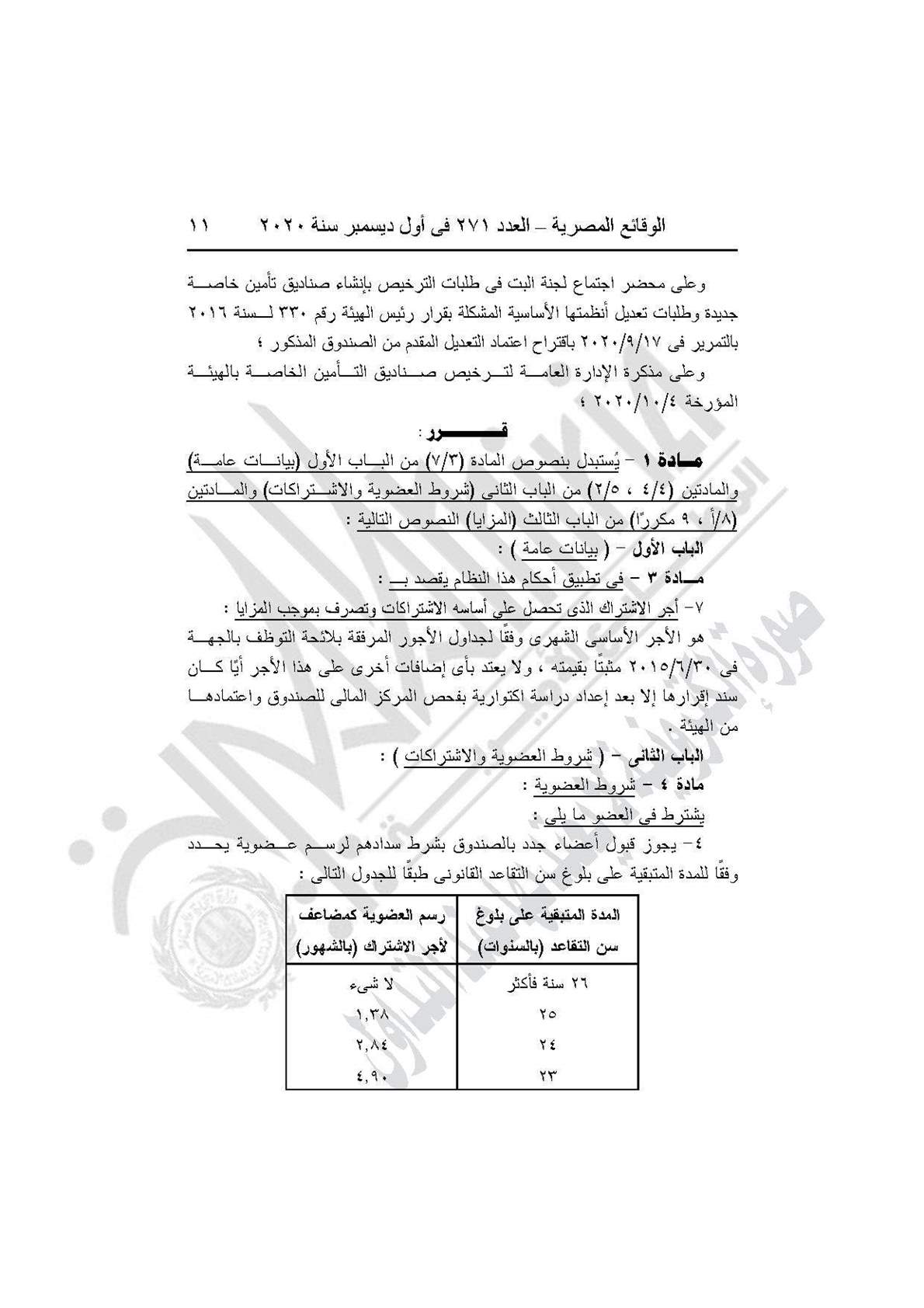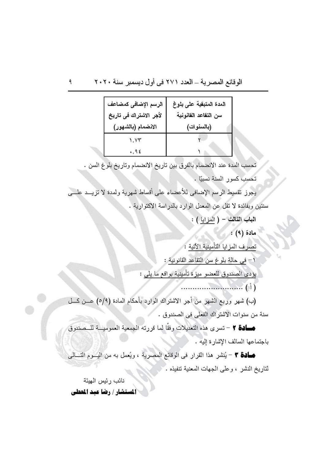 - القرار رقم 1118 لسنة 2020، باعتماد تعديل لائحة النظام الأساسى لصندوق التأمين الخاص لأعضاء هيئة التدريس والمدرسين المساعدين والمعيدين والعاملين بأكاديمية الفنون.
