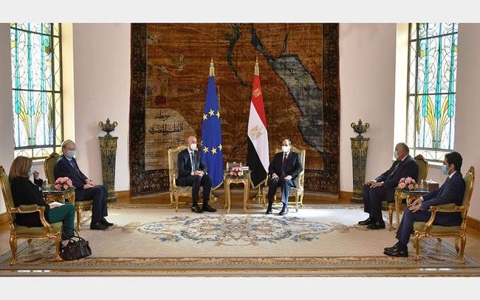فى الخامس من نوفمبر استقبل الرئيس عبد الفتاح السيسي بقصر الاتحادية "شارل ميشيل"، رئيس المجلس الأوروبي، بحضور السفير "كريستيان برجر" رئيس وفد الاتحاد الأوروبي بالقاهرة "مريم فان دن هيفل" كبيرة مستشاري الشئون الخارجية، وذلك بحضور السيد سامح شكري وزير الخارجية.