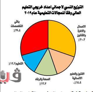 التوزيع النسبي لأعداد خريجى التعليم العالى وفقا للمجالات التعليمية عام 2019 | إنفوجراف