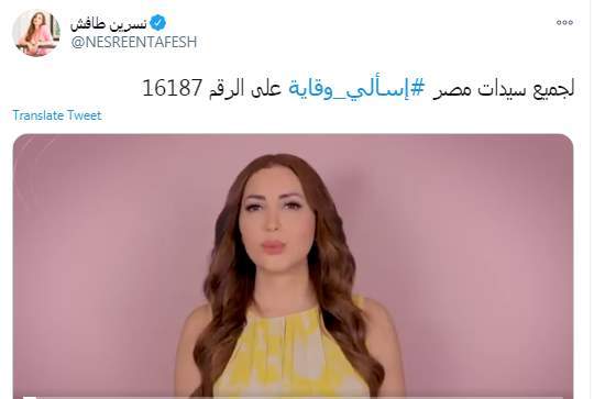 وكتبت نسرين طافش تغريدة على تويتر "لجميع سيدات مصر #إسألي_وقاية"