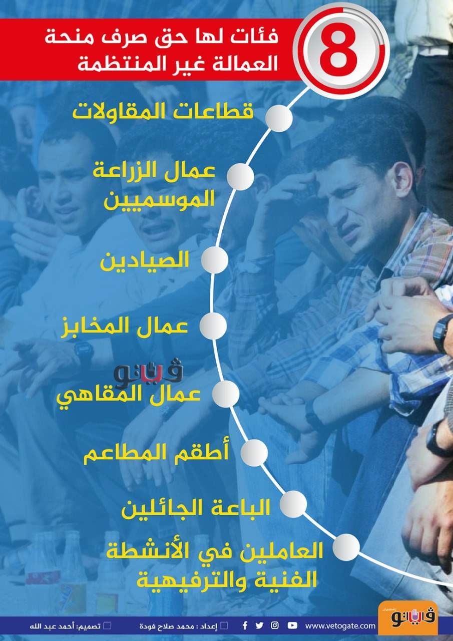 8 فئات لها حق صرف منحة العمالة غير المنتظمة | انفوجراف الثلاثاء 01/ديسمبر/2020 - 02:24 م 12/1/2020 2:24:32 PM 8 فئات لها حق صرف منحة العمالة غير المنتظمة شارك طباعة 18 حجم الخط شارك طباعة فيروس كورونا العمالة غير المنتظمة العمالة الموسمية