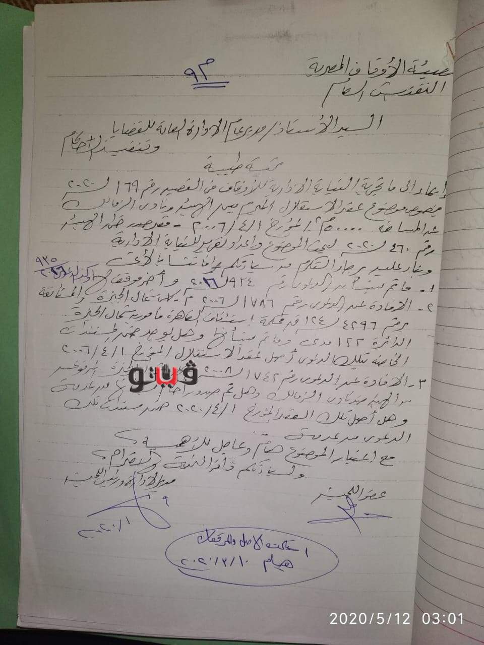 وقامت منطقه أوقاف الجيزه باخطار رئاسة هيئه الأوقاف بمخاطبات رسميه من بدء هذه المخالفات حتى تاريخه ولم يتم اتخاذ الإجراءات المخوله لرئيس هيئة الأوقاف المصرية للحفاظ على مال الوقف وذلك بعد عرض الفتوى رقم ٢٥٦ لسنة ٢٠٢٠ من منطقة أوقاف الجيزه على رئيس مجلس إدارة هيئة الأوقاف المصرية بتاريخ ١١/١٠/٢٠٢٠ طالبت فيها بالأتى: