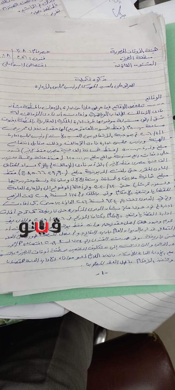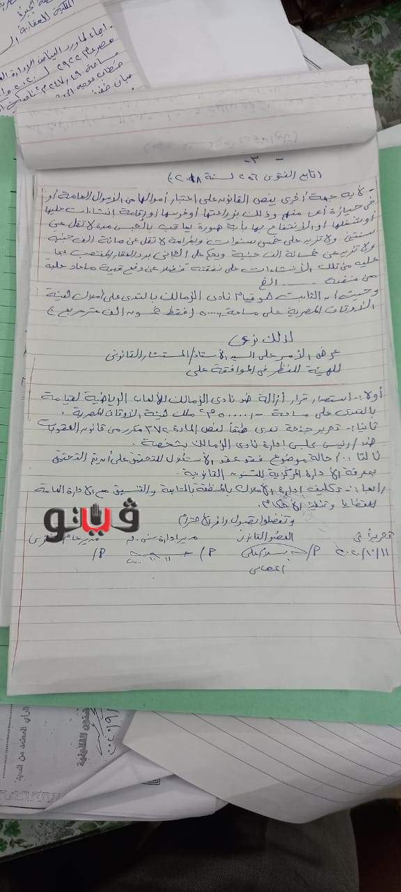 ولم يقم باستصدار قرار ازاله ضد نادي الزمالك للألعاب الرياضية