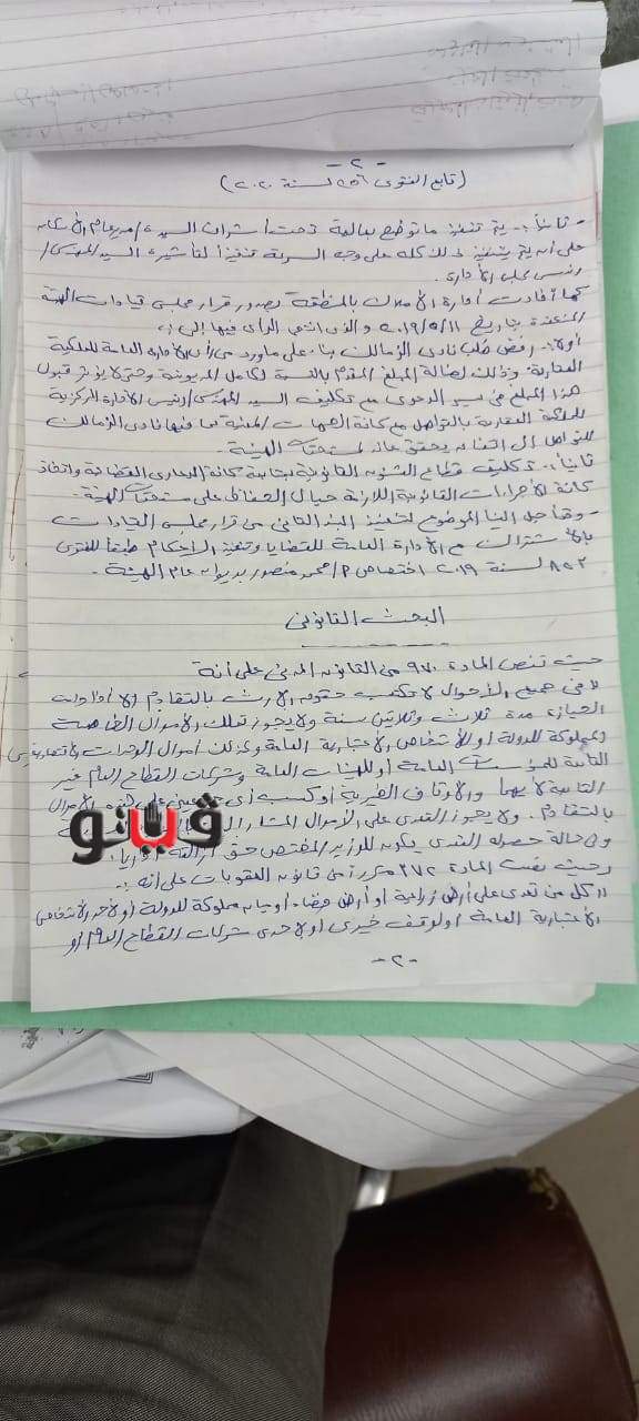 ثانيا:تحرير جنحة تعدى طبقا لنص المادة ٣٧٢ من قانون العقوبات ضد رئيس مجلس إدارة نادي الزمالك بشخصه