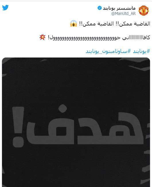 وكتب حساب مانشستر يونايتد باللغة العربية على موقع التواصل الاجتماعي بعد هدف كافاني القاتل بمرمى ساوثهامبتون:" القاضية ممكن!! القاضية ممكن!كافاااااااااااني جووووووووووووووووول".