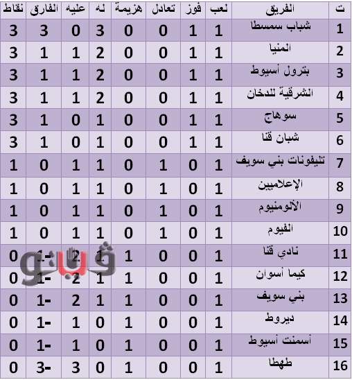 ترتيب مجموعة الصعيد بالقسم الثاني قبل مباريات اليوم بالجولة الثانية