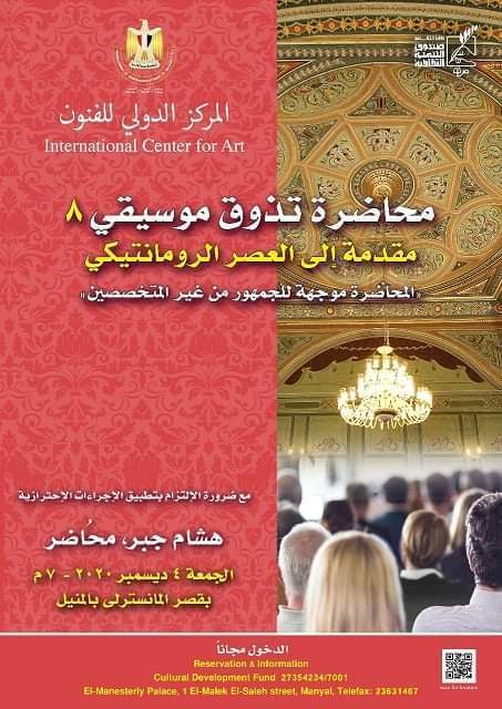 ويلقي المايسترو هشام جبر، مدير المركز الدولي للفنون سلسلة من المحاضرات عن الموسيقى العالمية، حيث يبدأها من خلال محاضرة بعنوان "مقدمة إلى العصر الرومانتيكي".