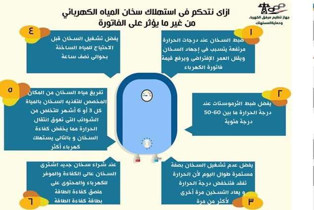 كشف جهاز مرفق الكهرباء وحماية المستهلك، عن العديد من النصائح لاستهلاك سخان المياه الكهربائى دون التأثير على الفاتورة.