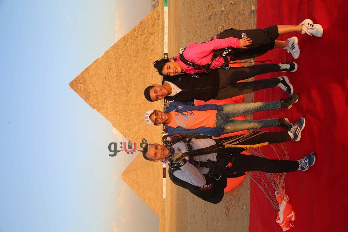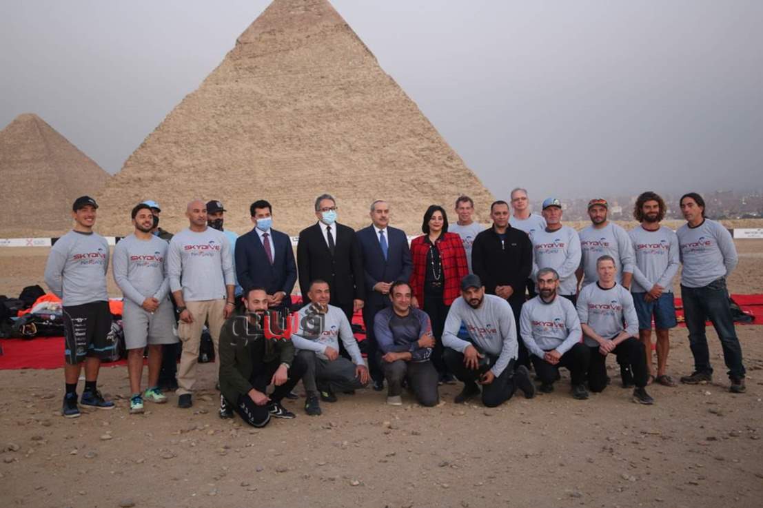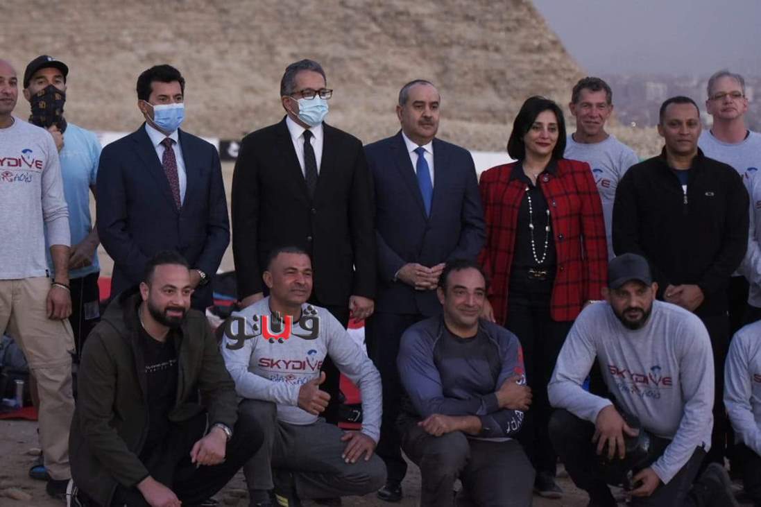 وزراء السياحة والرياضة والطيران يشهدون عرض قفز بالمظلات بسفح الأهرامات| صور
