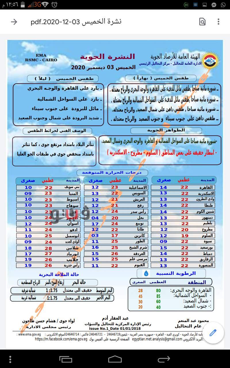 وفيما يلي بيان بدرجات الحرارة المتوقعة اليوم على مدن ومحافظات مصر..