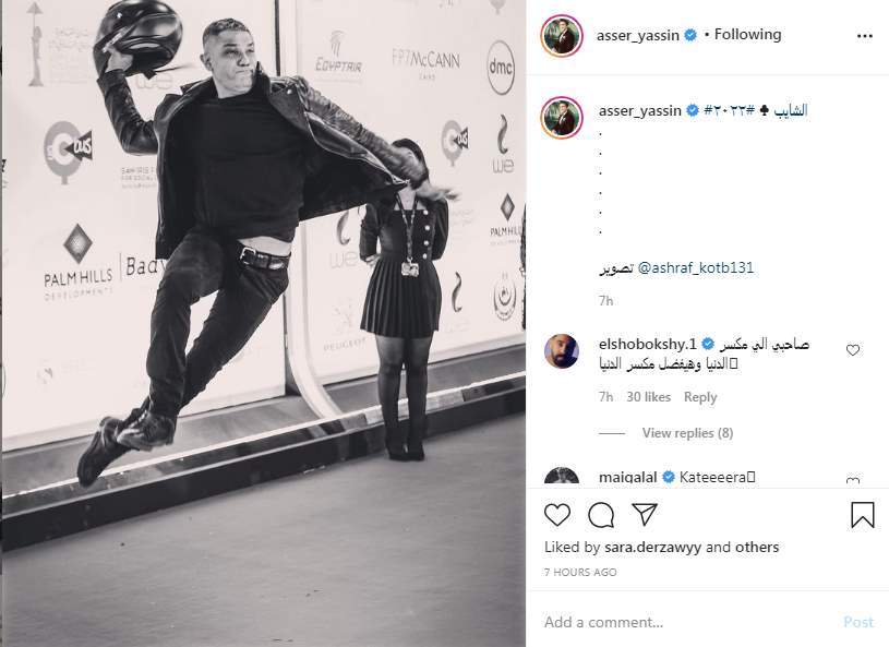 وشارك آسر ياسين الصورة عبر حسابه الرسمي بموقع الصور والفيديوهات القصيرة “انستجرام”، وعلق قائلًا: “الشايب 2022″، ورجح البعض أن اللوك الذي ظهر به أمس، هو الخاص بالفيلم.