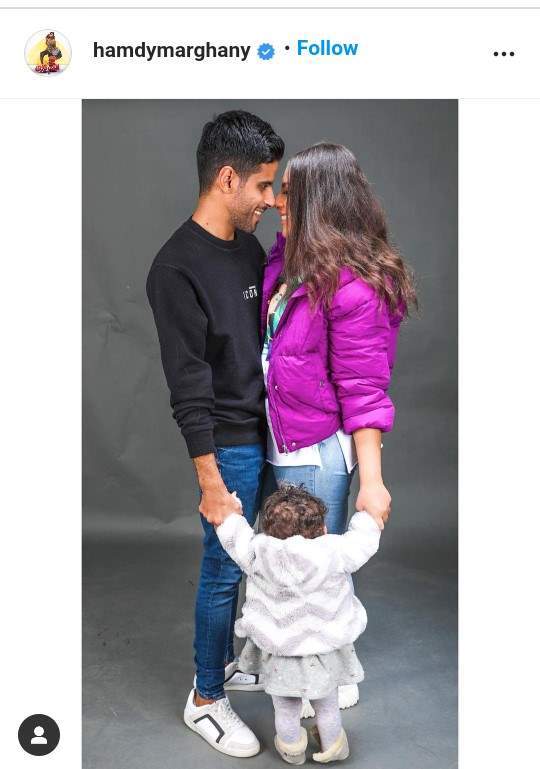 احتفل الفنان حمدي الميرغني، أحد أبطال مسرح مصر، بالذكرى الأولى لميلاد ابنته الوحيدة "تمارا"، ونشر صورة جديدة برفقة زوجته إسراء عبد الفتاح وبنته، وذلك عبر حسابه الشخصي على تبادل الصور والفيديوهات "إنستجرام".