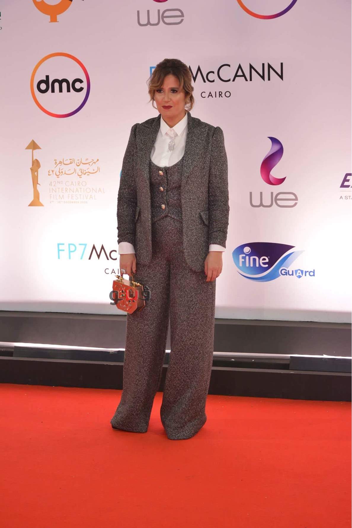 أما الفنانة هنا شيحة فقد أطلت على السجادة الحمراء بلوك كلاسيكي ببدلة باللون الرمادي.