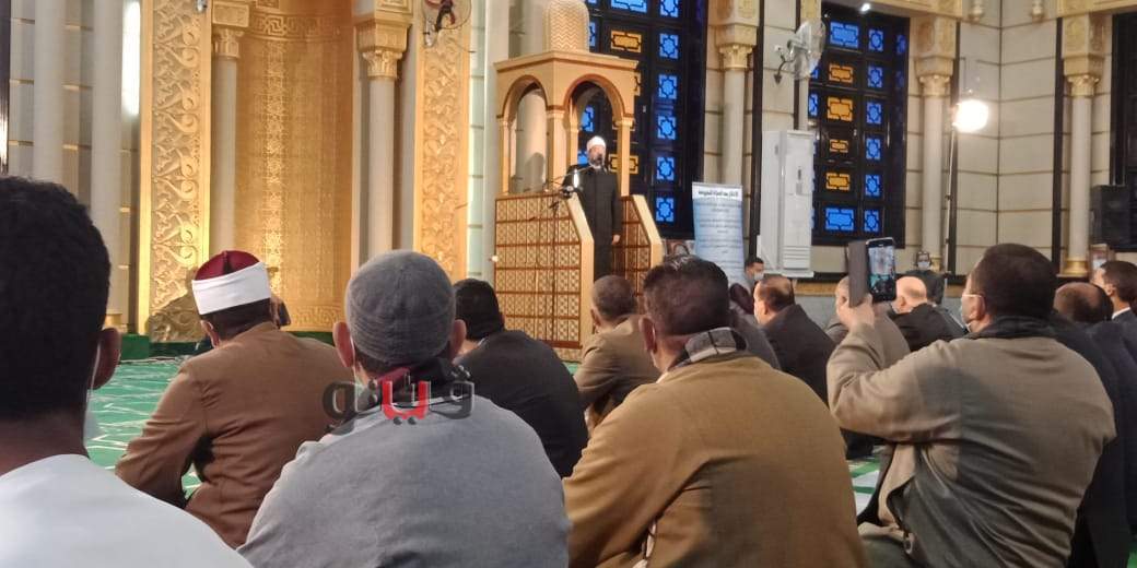 وألقى وزير الأوقاف خطبة الجمعة من المسجد وتحدث خلالها عن "مفهوم العرض والشرف" قائلًا: أن الشريعة الإسلامية السمحة جاءت لتحقيق مصالح العباد ودفع المفاسد عنهم وقد أمرنا النبي صلي الله عليه وسلك بحفظ الأعراض حيث قال في خطة الوداع يوم عرفه " إن الله حرم عليكم دماءكم وأموالكم وأعراضكم كحرمة يومكم هذا في شهركم هذا في بلدكم هذا" .