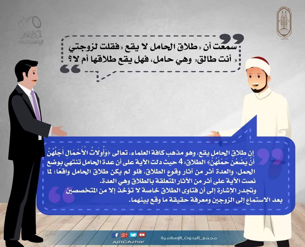 قلت لزوجتي أنت طالق وهي حامل فهل يقع طلاقها؟.. لجنة الفتوى تجيب | إنفوجراف