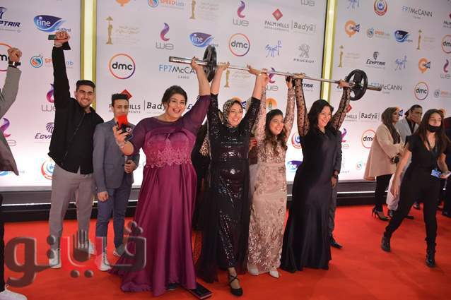 في لقطة طريفة رفع أبطال الفيلم الوثائقي "عاش يا كابتن" ،منذ قليل، الأثقال على السجادة الحمراء لخامس أيام مهرجان القاهرة السينمائي الدولي الـ 42، وذلك قبل حضورهم عرض فيلهم على المسرح الكبير لدار الأوبرا المصرية.