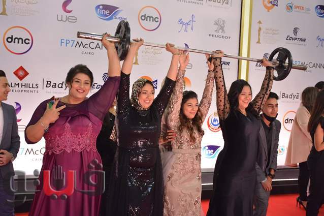 أبطال "عاش يا كابتن" يرفعون أثقالا على ريد كاربت مهرجان القاهرة السينمائي | صور