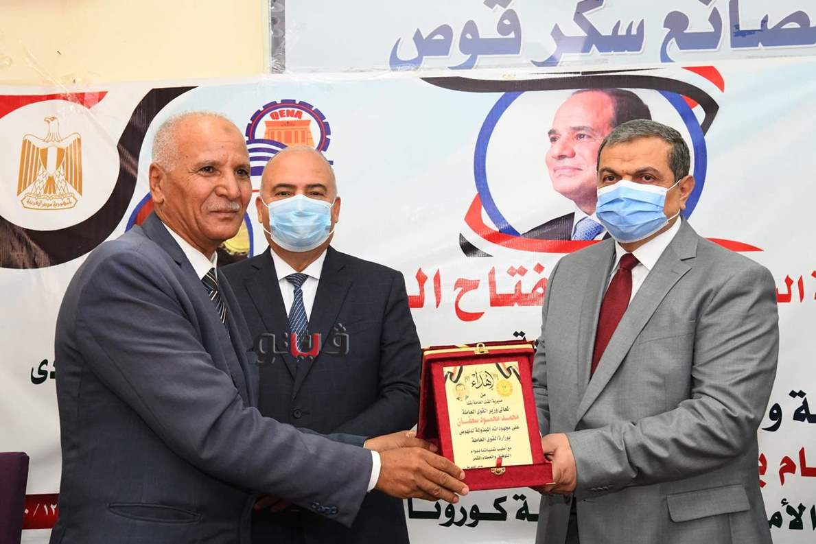 وأعرب عن سعادته بوجوده فى مصنع سكر قوص الذى يعد أحد قلاع صناعة السكر فى مصر.