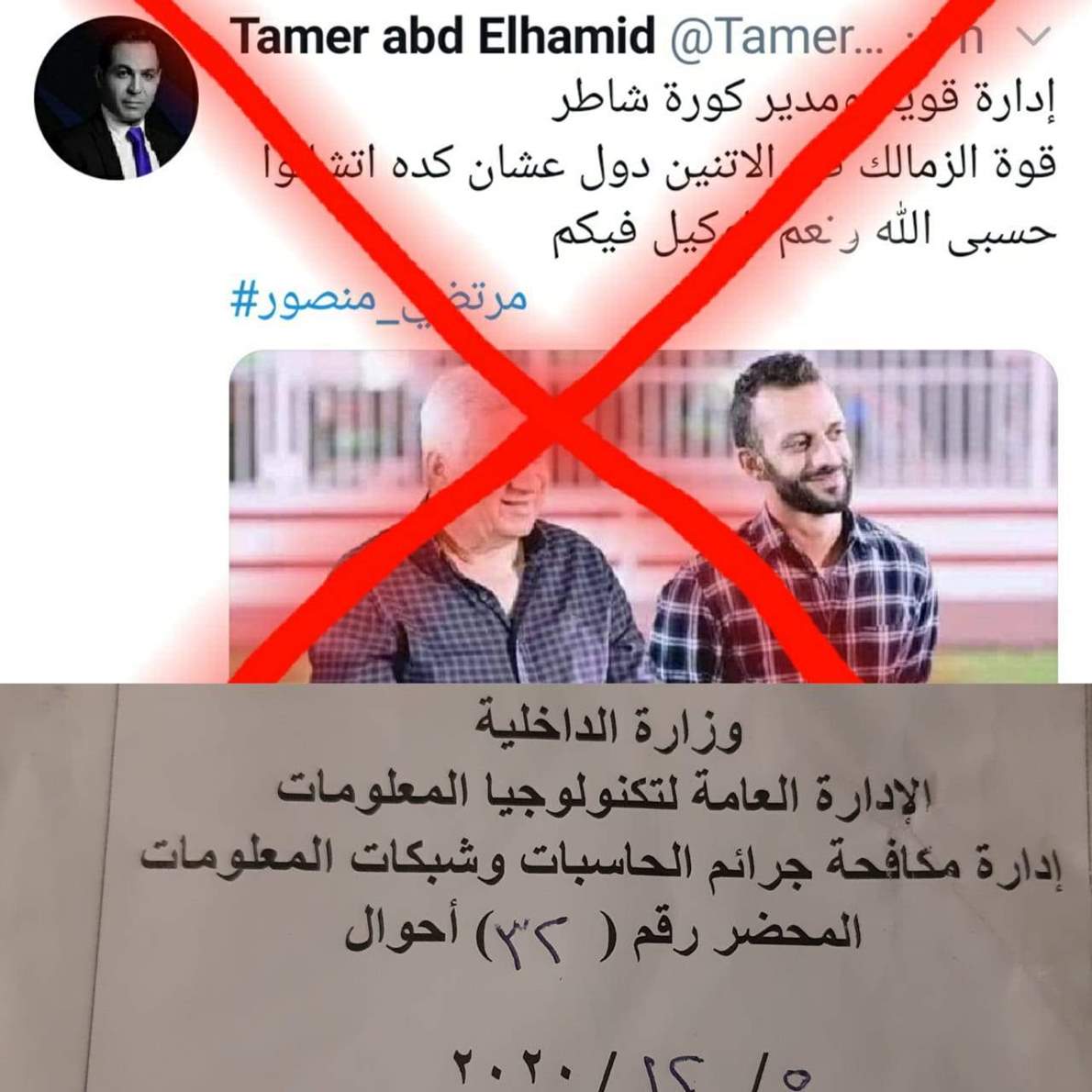 تامر عبدالحميد نجم الزمالك السابق أن حسابه على تويتر تم اختراقه ونشر تويتات لا