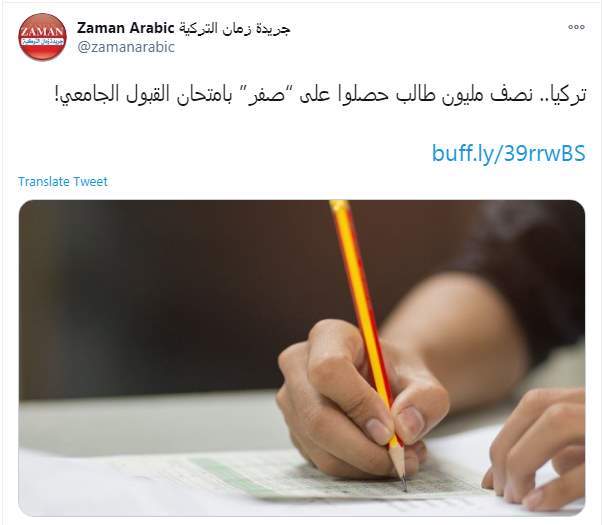 كشفت صحيفة "زمان التركية حصول نصف مليون طالب تركي على "صفر" بامتحان القبول الجامعي، مؤكدة أن تلك البيانات جاءت من خلال تقرير أعدته مؤسسة (ösym) التركية الحكومية المعنية بتنظيم الامتحانات.