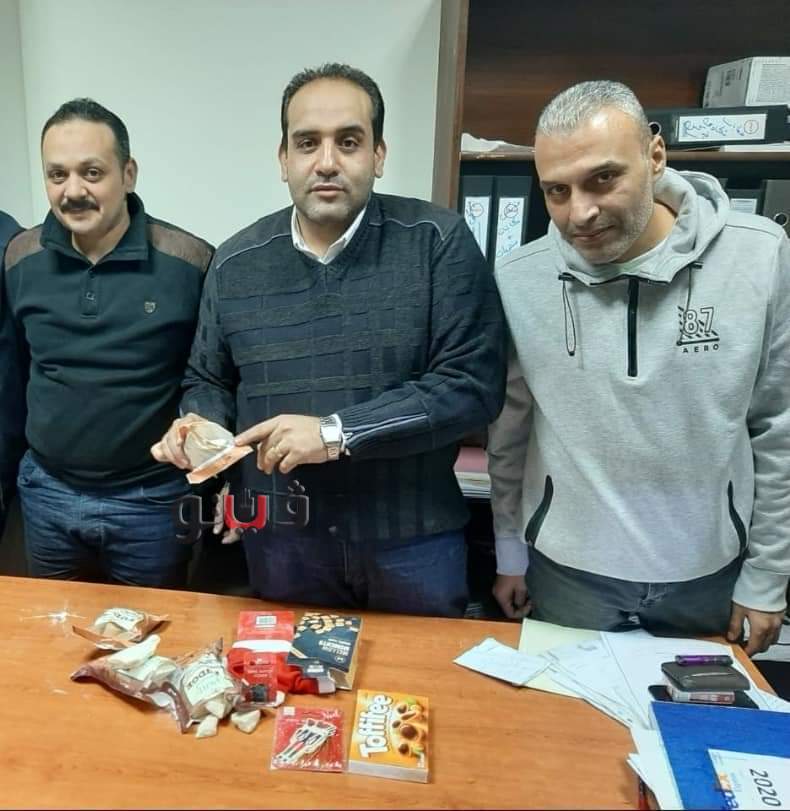 وقالت مصادر جمركية بالمطار، إنه أثناء أعمال الكشف والتفتيش على طرد شخصي وارد من لندن بوزن 2.3 كيلو يحتوي على أكياس مأكولات (مغلفة كتغليف المصنع) بمعرفة ياسر شاهين مدير التعريفة، وبالشك في محتويات الطرد من قبل القائم بالضبط حيث تلاحظ التلاعب في إغلاق الأكياس.