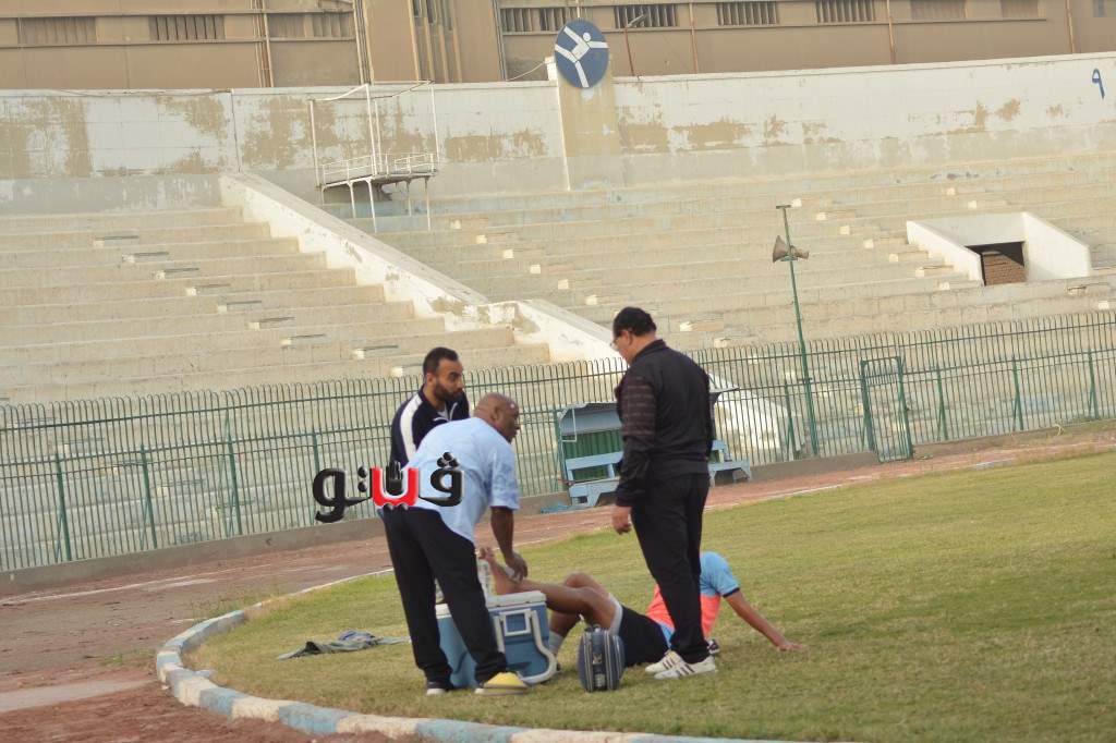 خالد الاخميمي صانع العاب الفريق للتدريب بعد تعرضه لاصابة قوية نتيجة كرة مشتركة