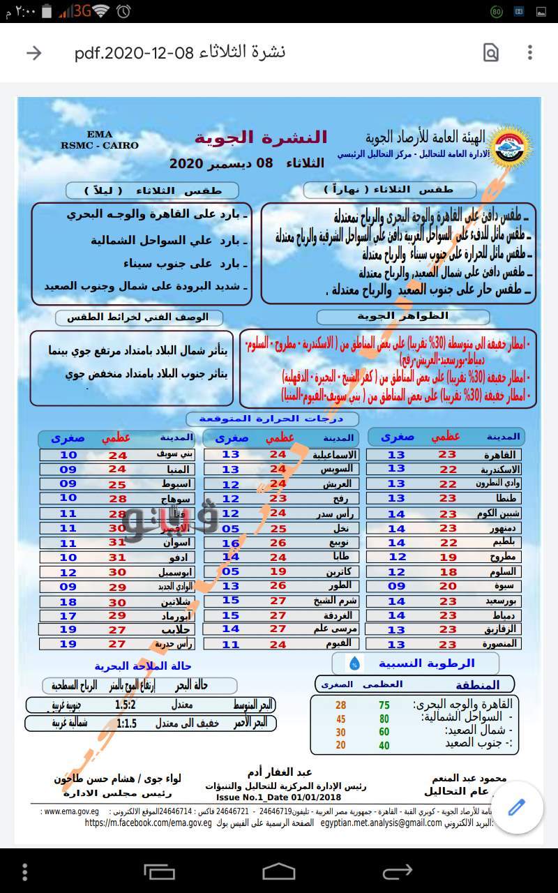 وفيما يلي بيان بدرجات الحرارة:
