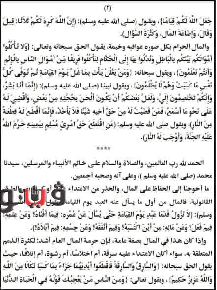 نص خطبة الجمعة القادمة عن "حتمية مواجهة الفساد"