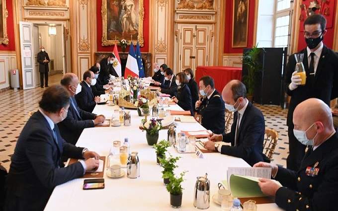ومن جانبه أكد الرئيس حرص مصر على تعزيز العلاقات العسكرية والأمنية وبرامج ونظم التسليح مع فرنسا وذلك في إطار علاقة الشراكة الإستراتيجية بين البلدين، خاصة في ضوء التحديات المتصاعدة في منطقتي الشرق الأوسط وشرق المتوسط، الأمر الذي يتطلب تكثيف التنسيق والتشاور بين البلدين من أجل مواجه تلك التحديات.