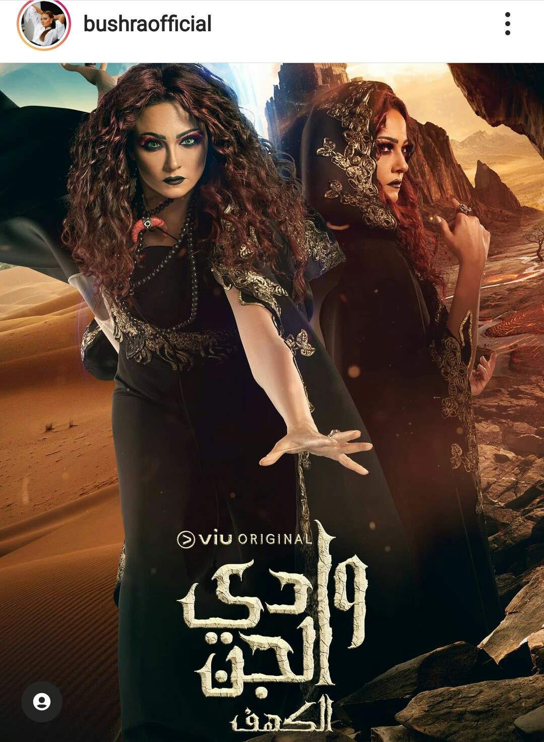 ونشرت بشرى صورة لها من أحدى أفيشات المسلسل معلقة عليها: "قريبا مسلسل #وادى_الجن على منصة VIU من إخراج حسام الجوهري".