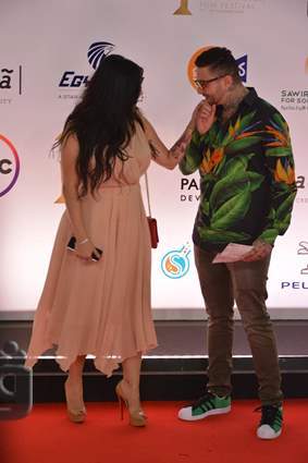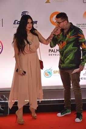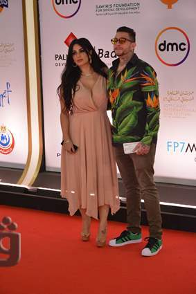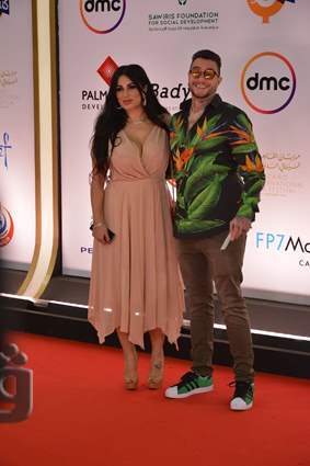 وحضر الفيشاوي برفقة زوجته ندى الكامل التي ارتدت فستان رائع، وأثناء مرورهما على السجادة الحمراء قام بتقبيل يدها أكثر من مرة.