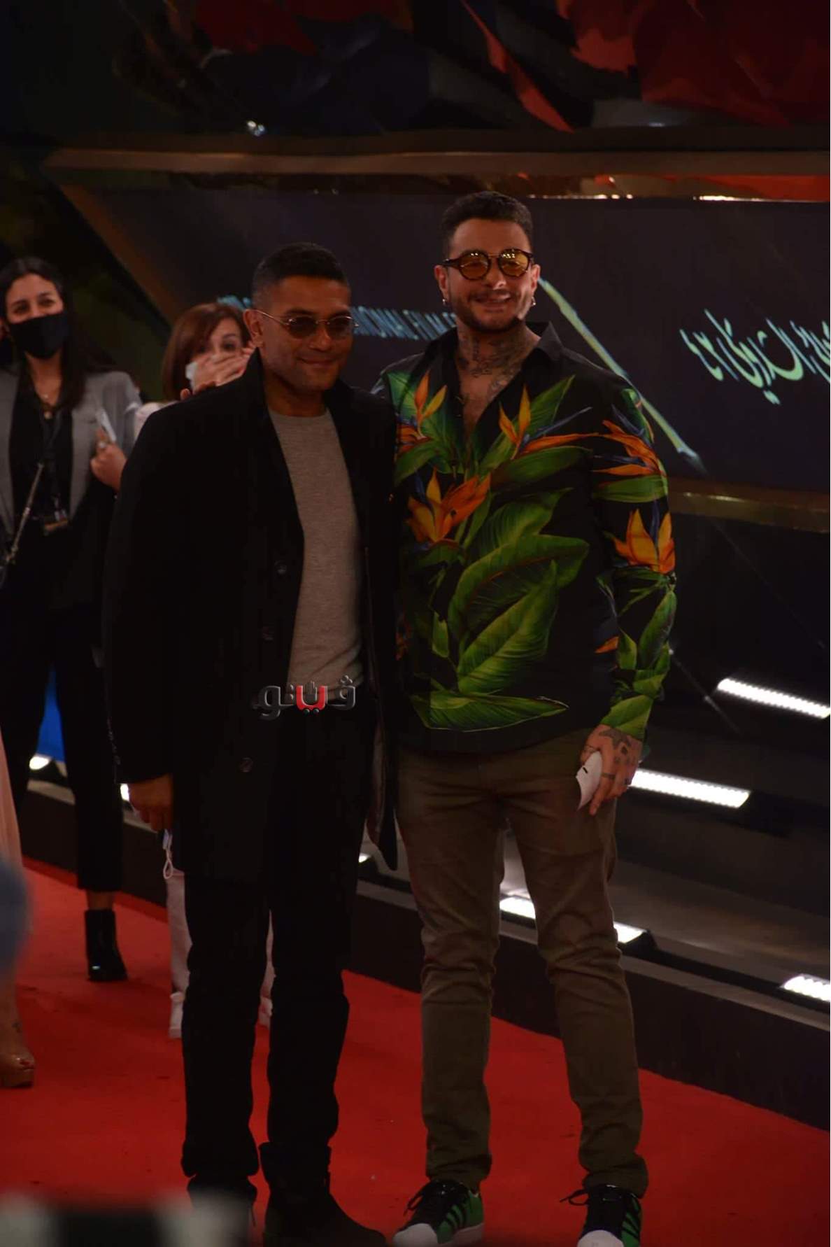 وصلة هزار بين أحمد الفيشاوي وأسر ياسين خلال حضور العرض الأول لفيلم " عنها" | فيديو وصور