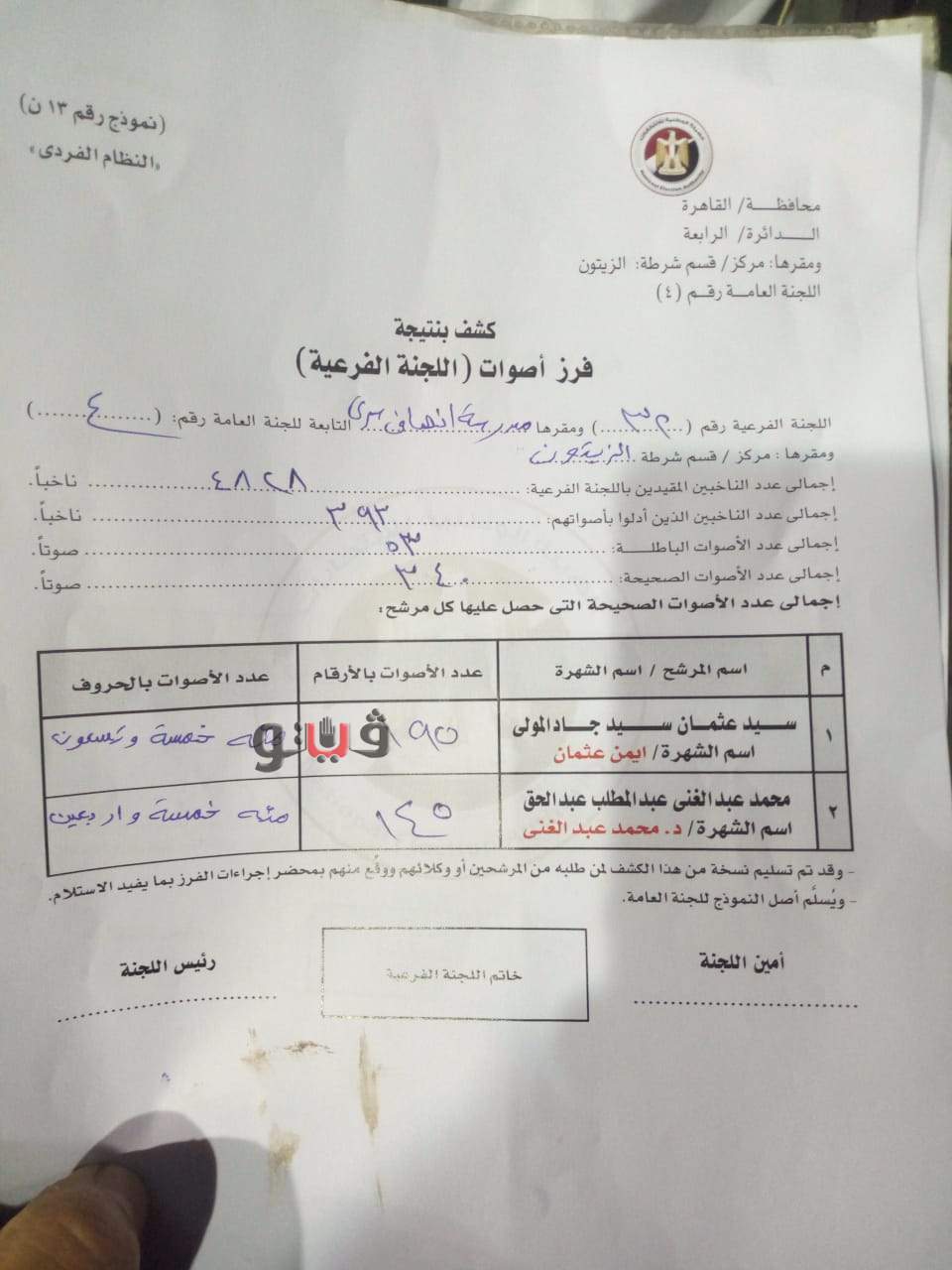 الحصر العددي لأصوات المرشحين باللجنة رقم 32 قسم شرطة الزيتون