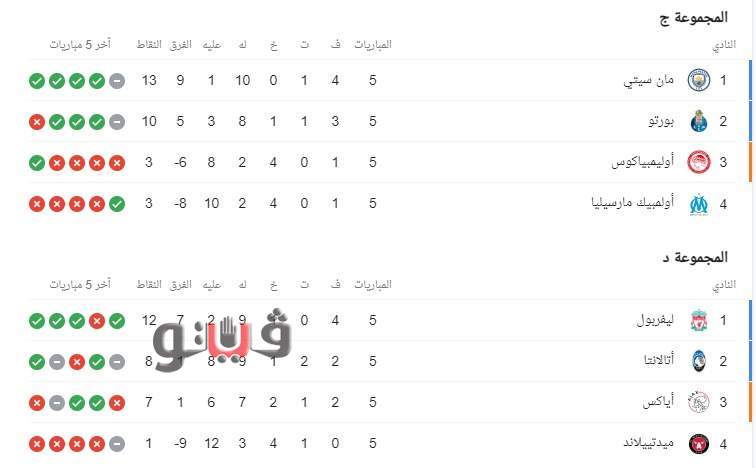 تعرف على ترتيب المجموعات بدوري أبطال أوروبا