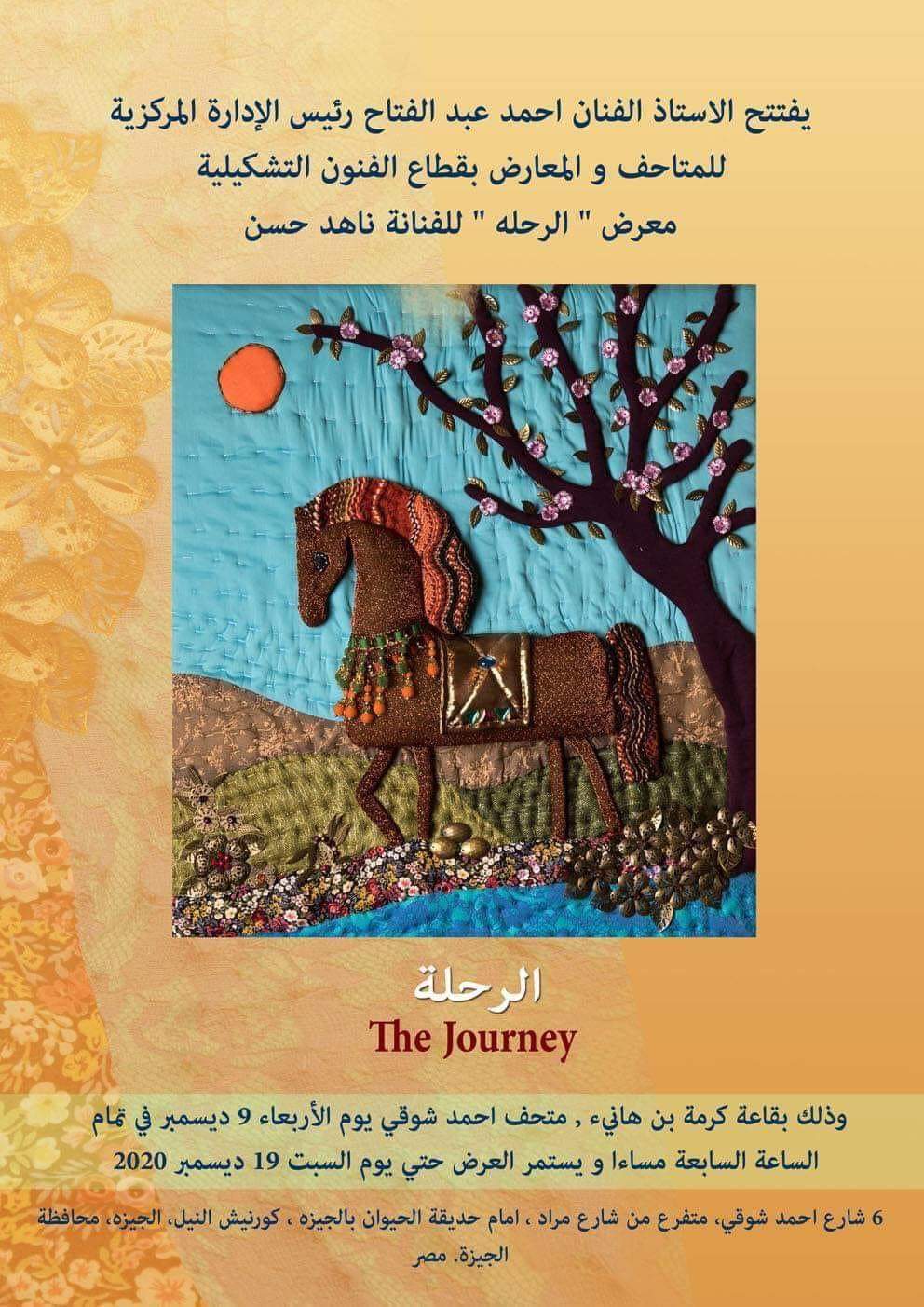 معرض "الرحلة" حالة من الرهافة والجمال، حيث تعرض الفنانة ناهد حسن مجموعة من اللوحات تصور عالم شديدة الشاعرية والخيال الرومانسي، ورحلة للأحلام البسيطة، وتُقدم المجموعة صورة لعالم الفنانة ومواطن الشغف والإلهام كما هي مشاهد مهمة من تجربتها الفنية.