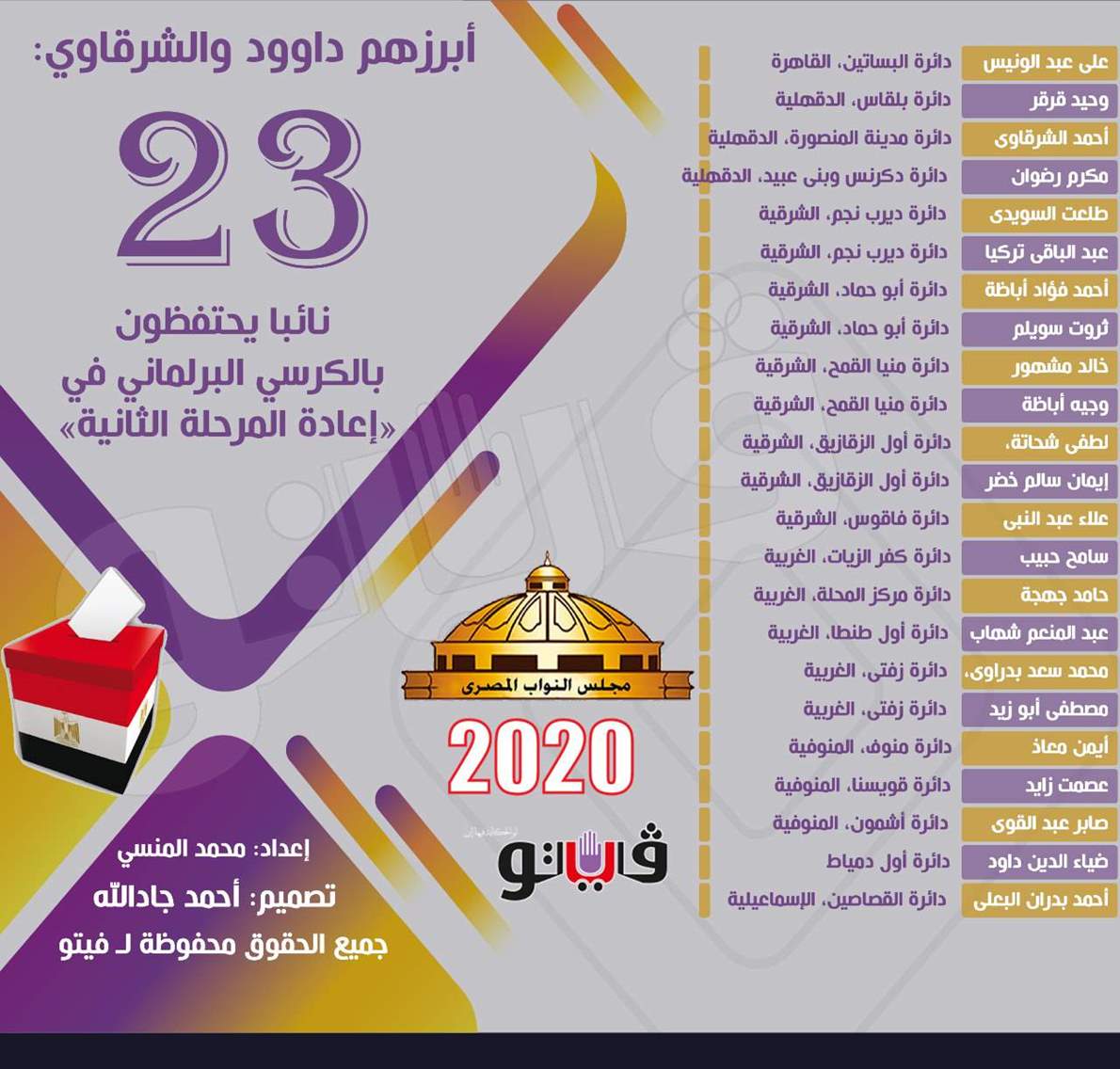 23 نائبا يحتفظون بالكرسي البرلماني في «إعادة المرحلة الثانية» (انفو جراف) الأربعاء 09/ديسمبر/2020 - 02:23 م 12/9/2020 2:23:10 PM 23 نائبا يحتفظون بالكرسي البرلماني في «إعادة المرحلة ا شارك طباعة 18 حجم الخط شارك طباعة مجلس النواب ضياء الدين داوود انتخابات مجلس النواب ابراهيم داوود أحمد الشرقاوي