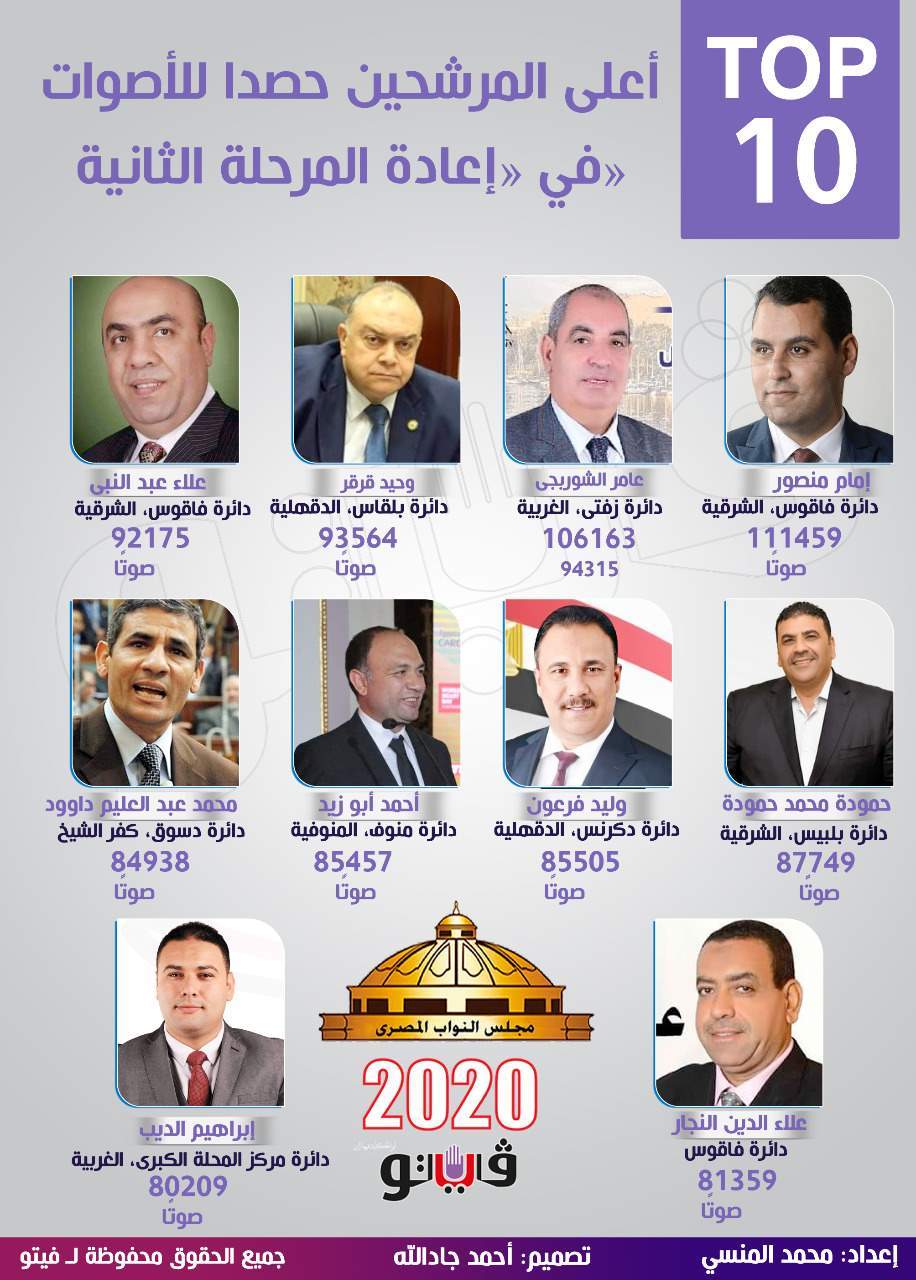 TOP 10.. أعلى المرشحين حصدا للأصوات في «إعادة المرحلة الثانية» | إنفو جراف الأربعاء 09/ديسمبر/2020 - 02:22 م 12/9/2020 2:22:15 PM أعلى المرشحين حصدًا للأصوات في «إعادة المرحلة الثانية& شارك طباعة 18 حجم الخط شارك طباعة مجلس النواب انتخابات مجلس النواب البرلمان نتيجة جول الاعادة
