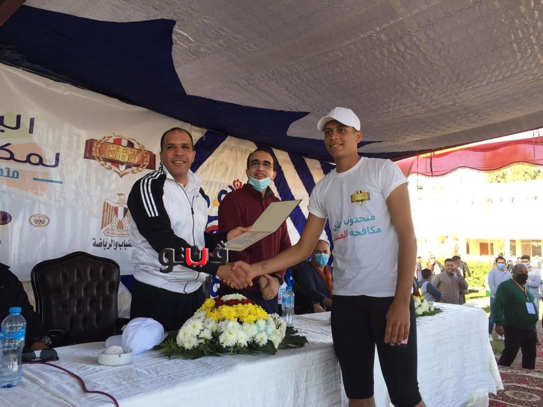 وفي ختام الماراثون قامت القيادات التنفيذية بإهداء شهادات تقدير لأول عشرة شباب و فتيات المشاركين بالماراثون تقديرا لنشاطهم الفعال .
