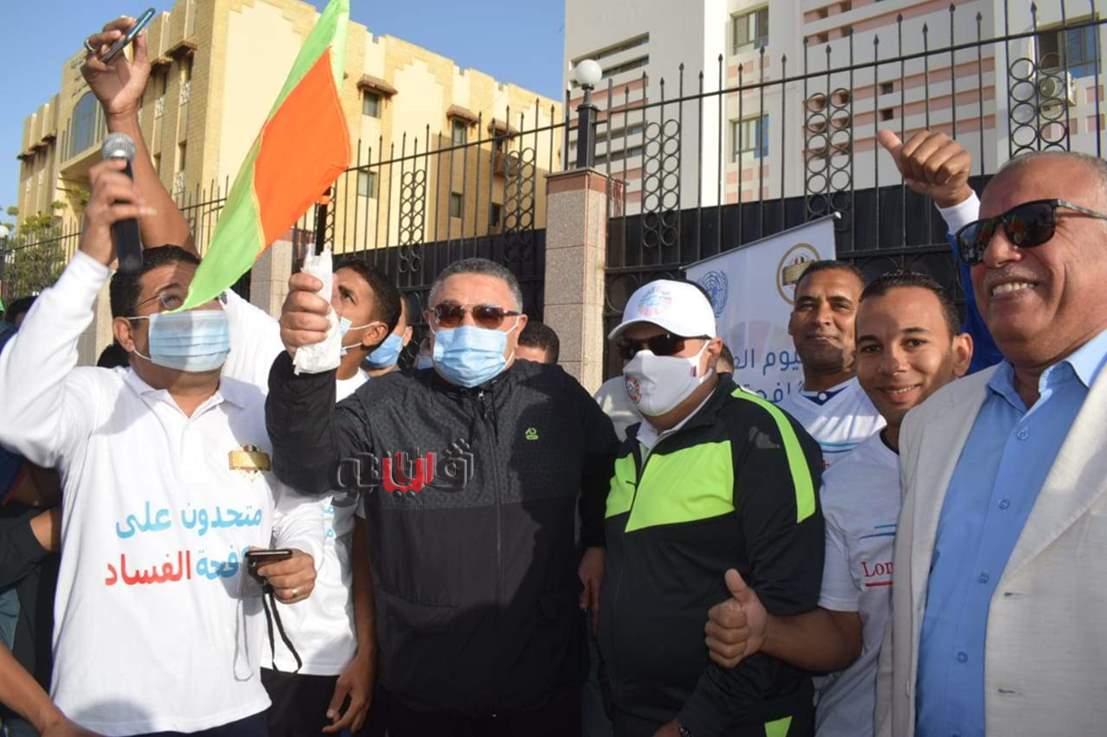 وعلى هامش الماراثون قال المحافظ: "نحتفل باليوم العالمي لمكافحة الفساد، نؤكد على أهمية المشاركة المجتمعية التي تقع على عاتق الجميع في مواجهة الفساد لما له من آثار سلبية على التنمية، وكلنا متحدون على مكافحة الفساد وشركاء في حماية مصالح الوطن".