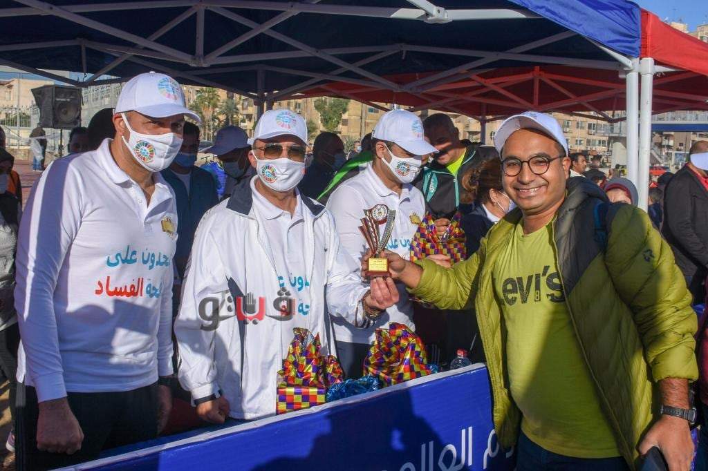كرم اللواء محمد الشريف محافظ الاسكندرية اليوم الاربعاء الفرق المشاركة من قبل مديرية الشباب والرياضة بمختلف اعمارهم خلال الماراثون الرياضى لليوم العالمى لمكافحة الفساد.