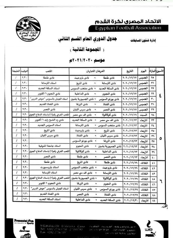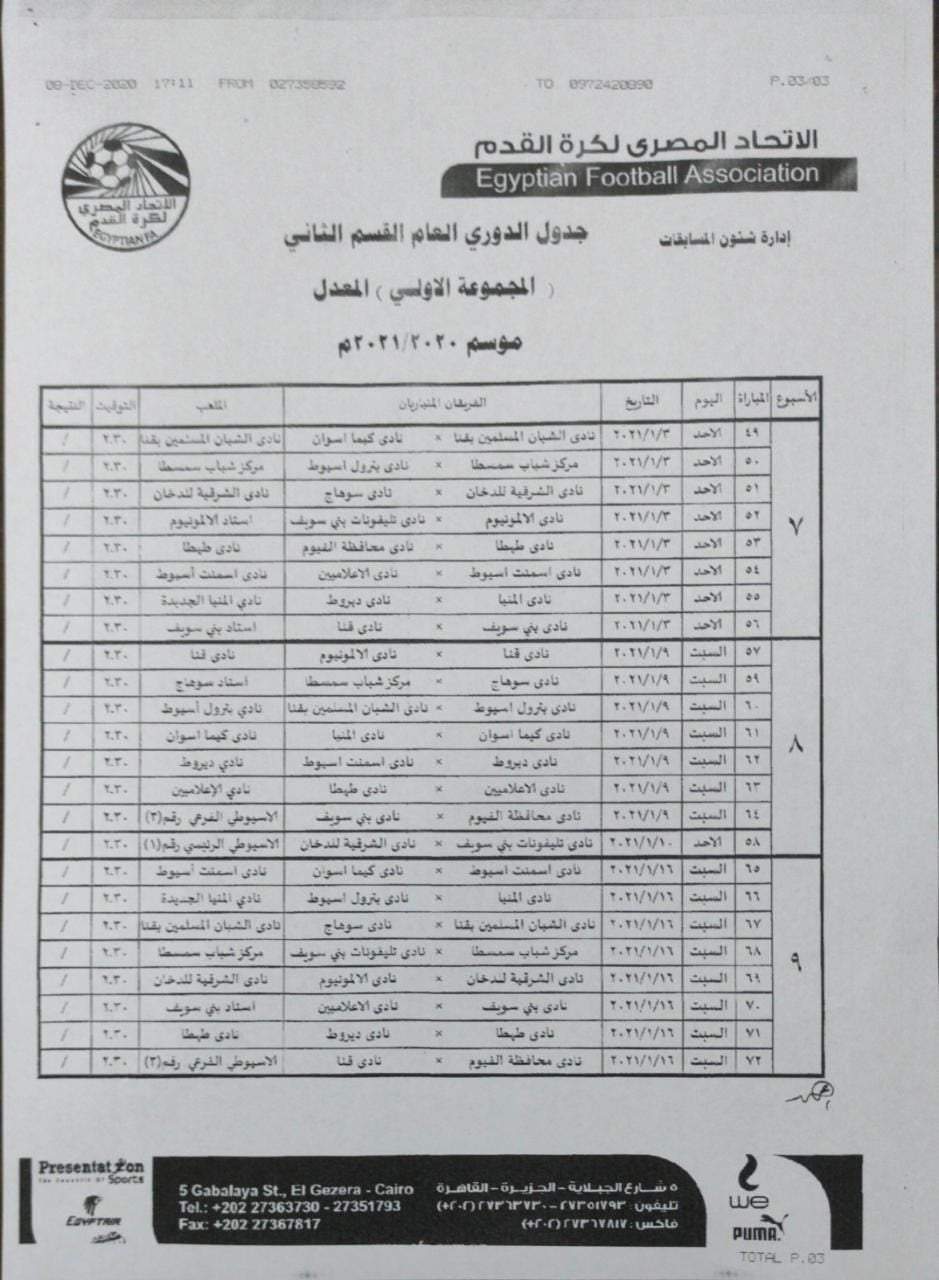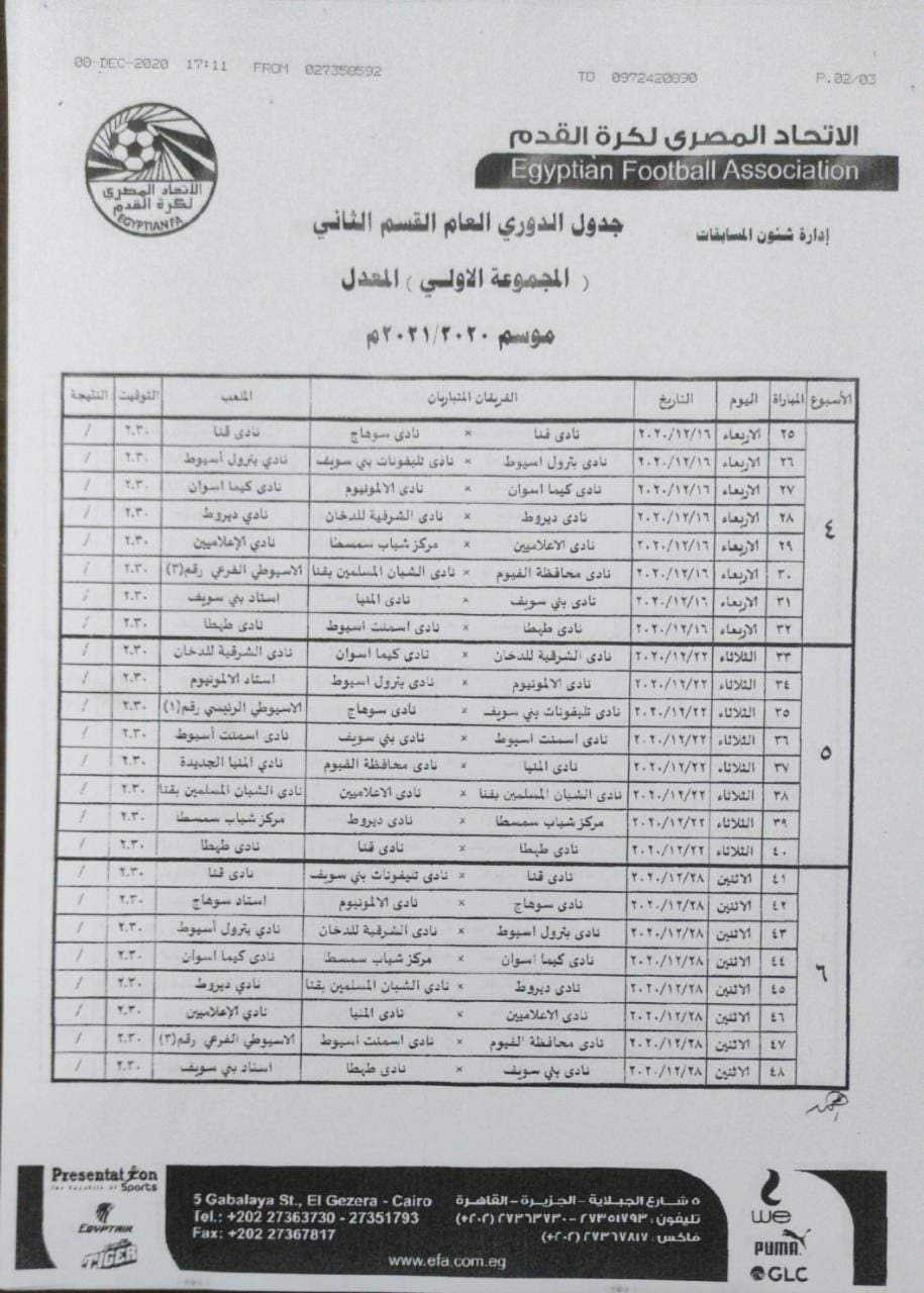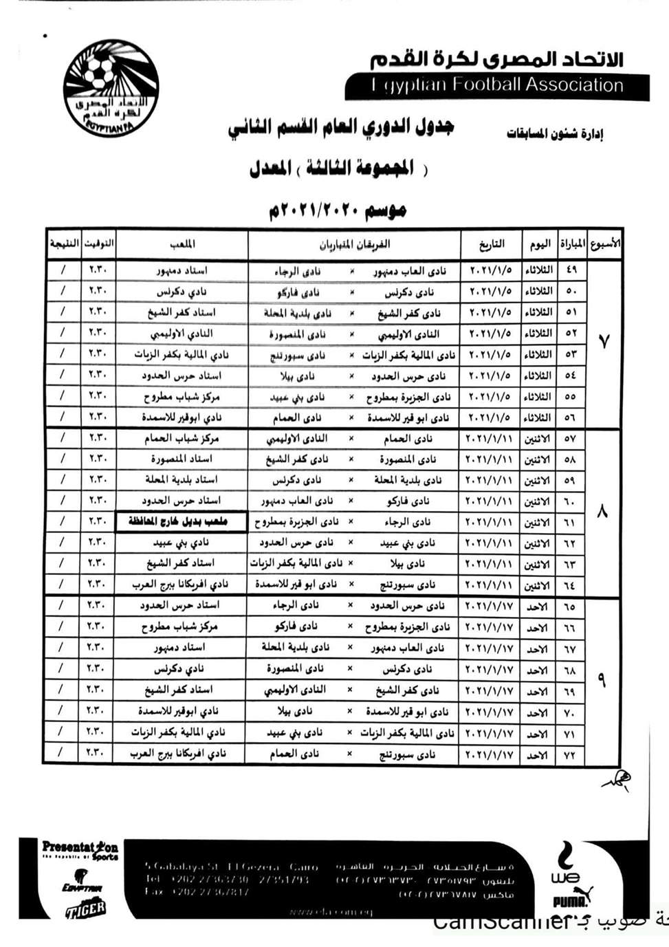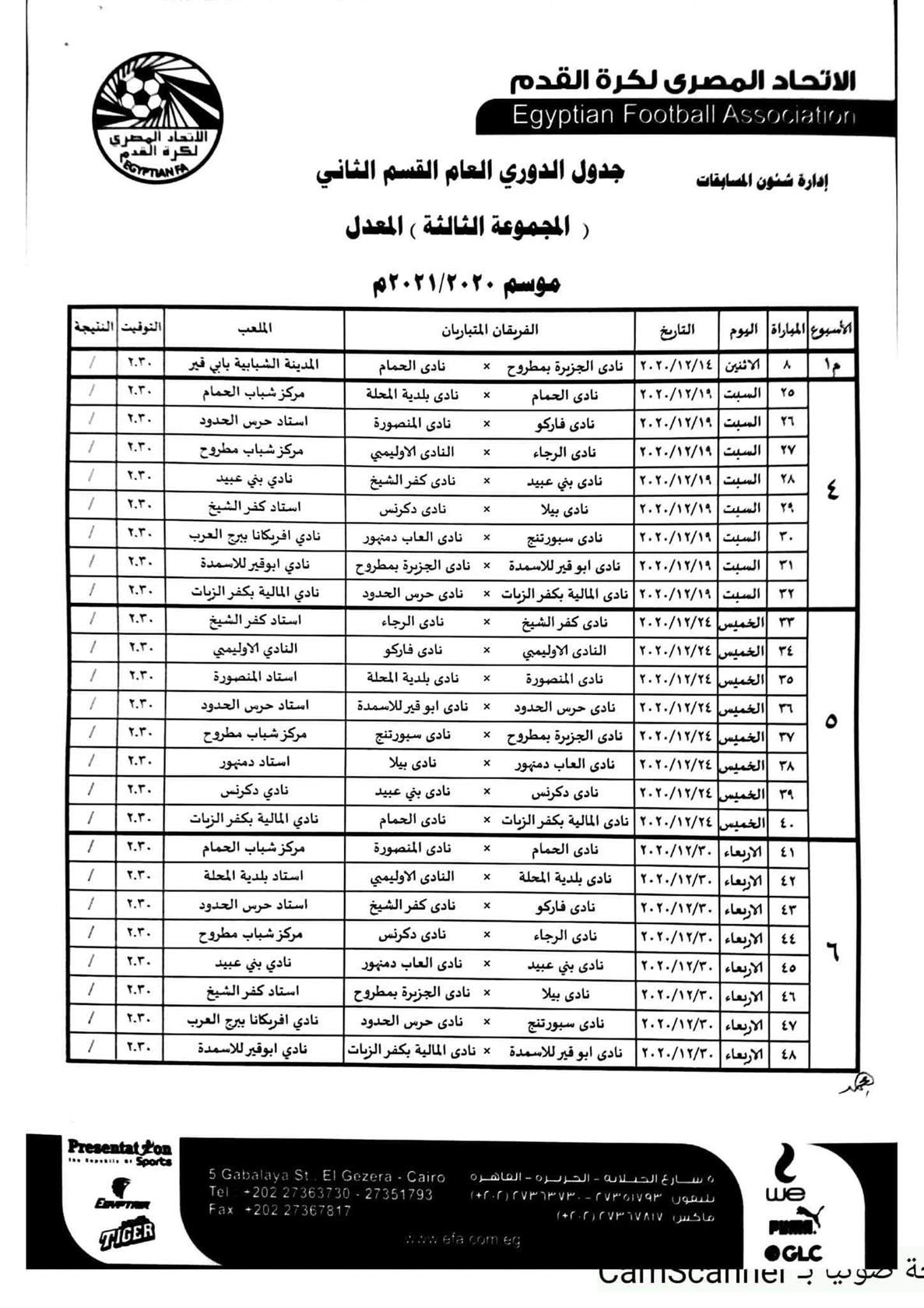 تعديلات في مواعيد مباريات المجموعات الثلاثة بدوري القسم الثاني