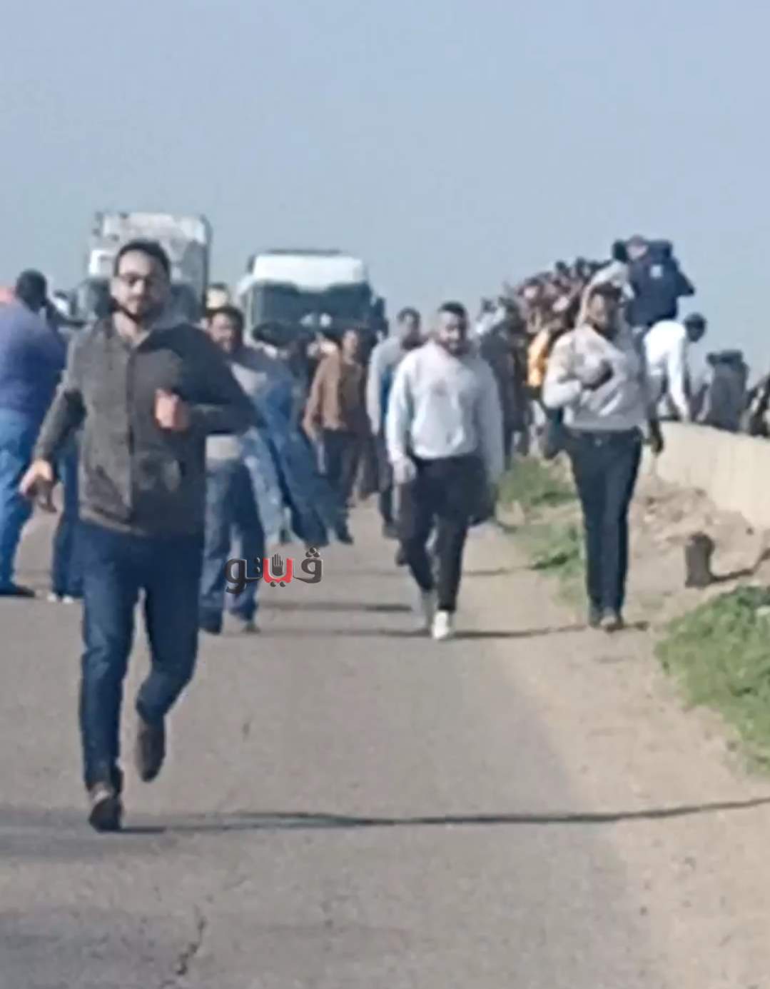 وقامت الأجهزة الأمنية بإطلاق الصافرات والمناداة التي تحث المواطنين علي فض التجمهر وفتح الطريق .