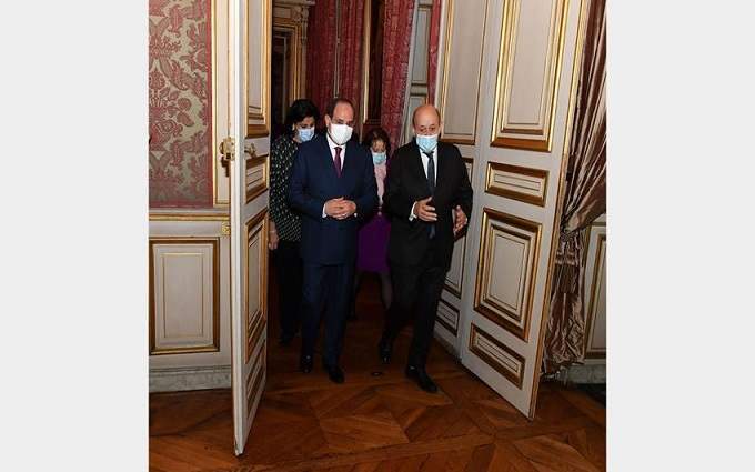 استهل الرئيس السيسي اليوم الأول من زيارته إلى العاصمة الفرنسية باريس بمقابلة "جان إيف لودريان" وزير خارجية فرنسا، بمقر وزارة الخارجية الفرنسية.
