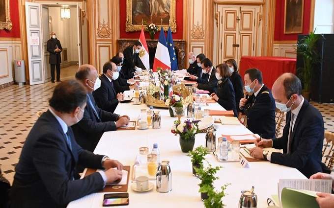 ومن جانبه أكد الرئيس حرص مصر على تعزيز العلاقات العسكرية والأمنية وبرامج ونظم التسليح مع فرنسا وذلك في إطار علاقة الشراكة الإستراتيجية بين البلدين، خاصة في ضوء التحديات المتصاعدة في منطقتي الشرق الأوسط وشرق المتوسط، الأمر الذي يتطلب تكثيف التنسيق والتشاور بين البلدين من أجل مواجه تلك التحديات.