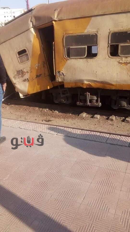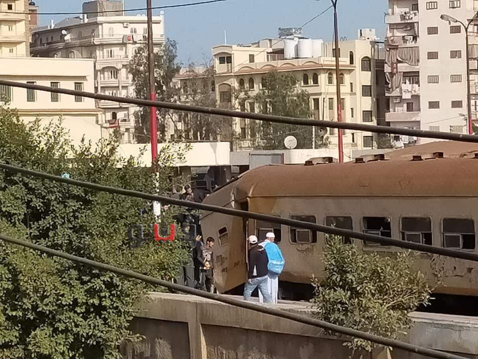 انتقلت سيارات الإسعاف ورجال الأمن وتبين تصادم القطار بجانب المحطة اثناء تبديل اتجاه سيره داخل المحطة.