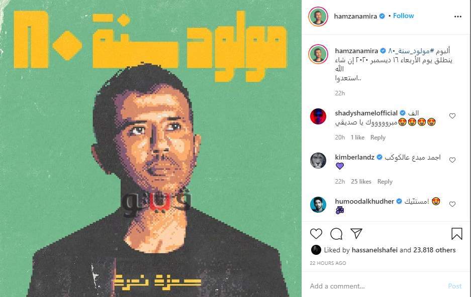 استعرض الفنان حمزة نمرة البوستر الدعائى لألبومه الجديد الذى يحمل اسم "مولود سنة 80"،المقرر طرحه يوم الأربعاء المقبل الموافق 16 ديسمبر.