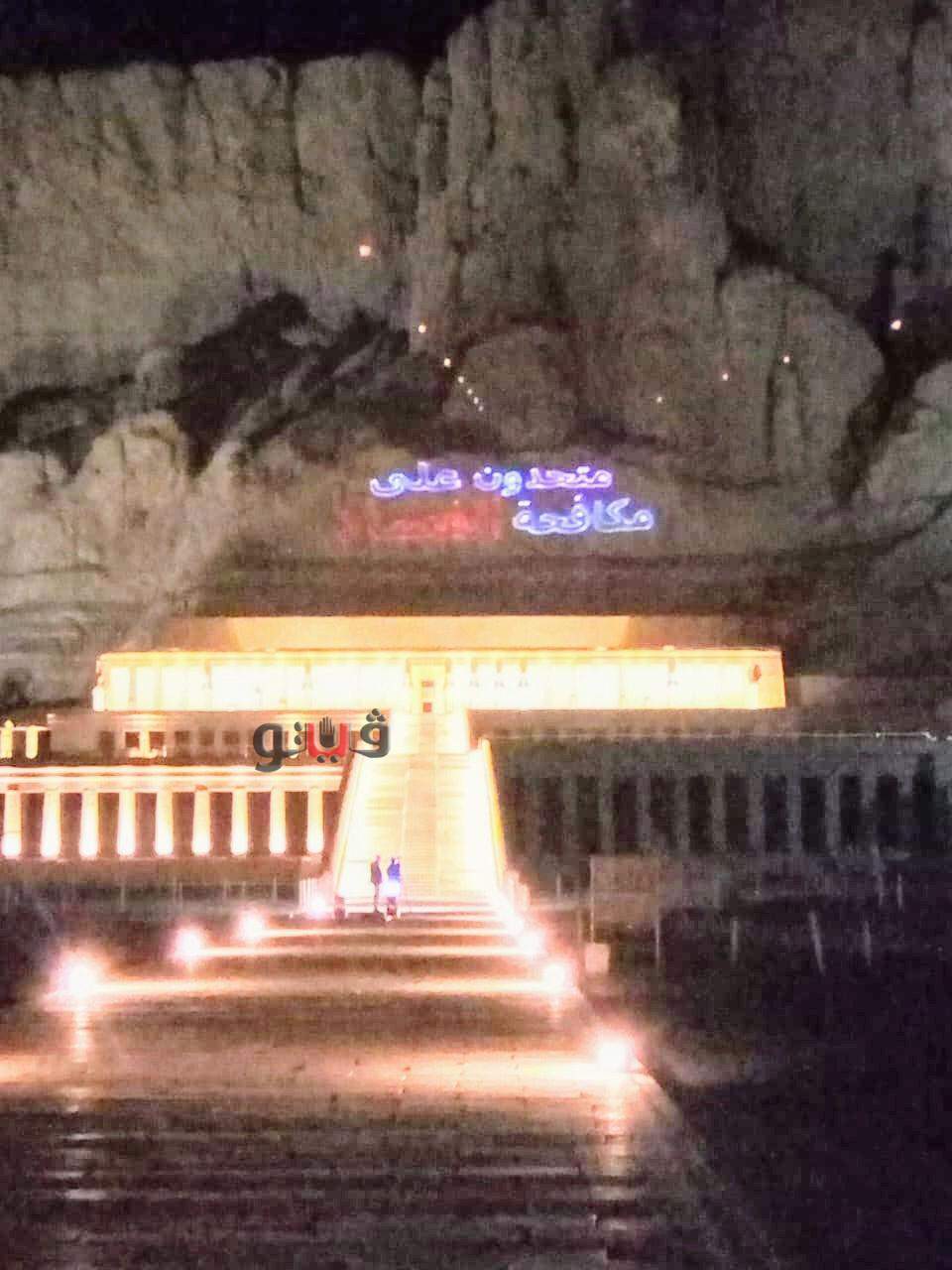 معبد حتشبسوت يضيء ليلا بعبارة "متحدون على مكافحة الفساد"| صور
