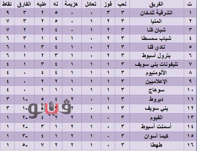 جدول ترتيب مجموعة الصعيد بدوري القسم الثاني بعد الجولة الثالثة