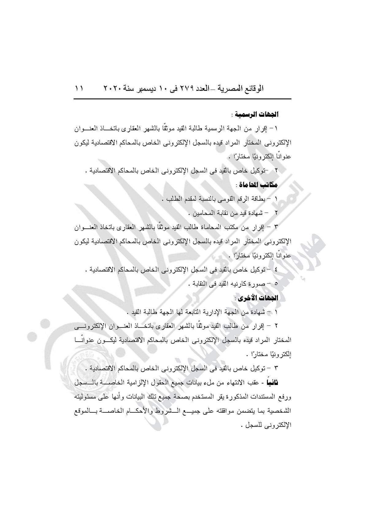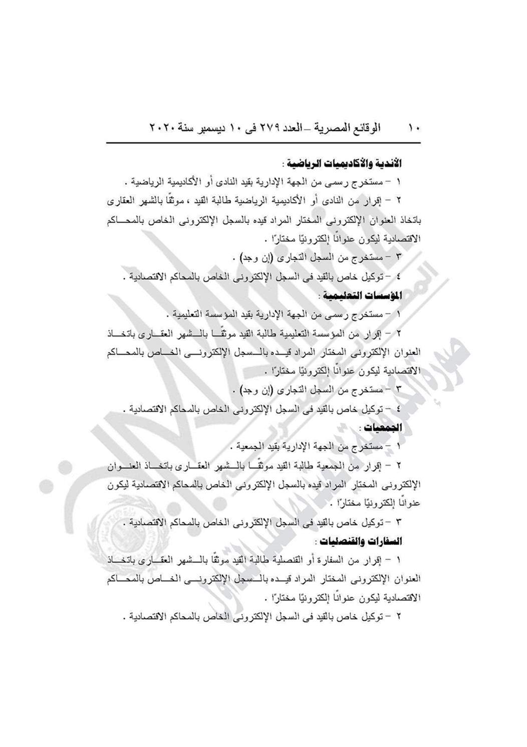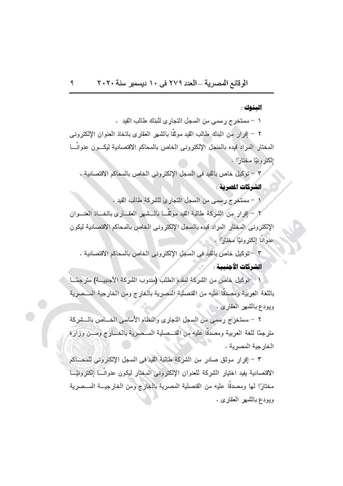 والقرار رقم 8548 لسنة 2020، بتنظيم القيد في السجل الإلكتروني للتقاضي أمام المحاكم الاقتصادية.